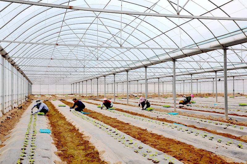 一大早,一盘盘新鲜的甜瓜苗就被运往准备栽种甜瓜的温室大棚里,村民们正抓紧时间进行移栽和铺设地膜。