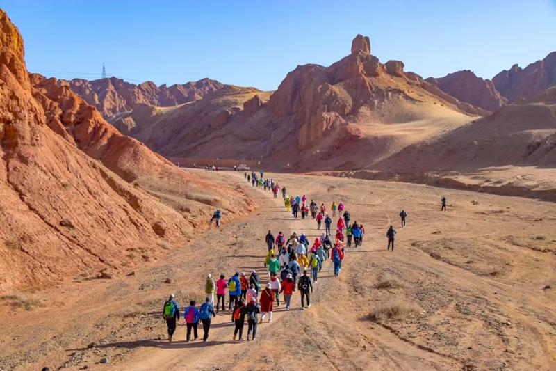 “在蓝天、山谷之间奔跑,感觉自带氧气瓶,活力满满,一点都不累。接下来这几天,要在这里好好玩玩。”来自金昌的徒步爱好者李普凡和朋友们规划了打卡羊台山、金沙湾景区的徒步路线。“我们都比较喜欢户外运动,今天一路看到两边都是葡萄地,夏天应该会更好玩,以后还会带家人和朋友过来。”