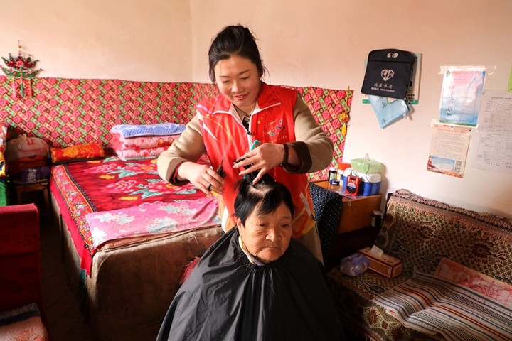 “我们常态化开展‘情溢宣威’关爱帮扶志愿服务活动,老人按需‘点单’,我们贴心服务。张大爷想收拾一下前院卫生,但是身体状况不好,我们就自发帮大爷把庭院打扮的干净漂亮。李奶奶想要理发,我们就派精通理发技巧的志愿者为李奶奶居家理发。虽然会累,但是看到老人脸上的笑容,心里暖洋洋的,也收获了一份快乐。”宣威村新时代文明实践志愿者贾雪兰说道。
