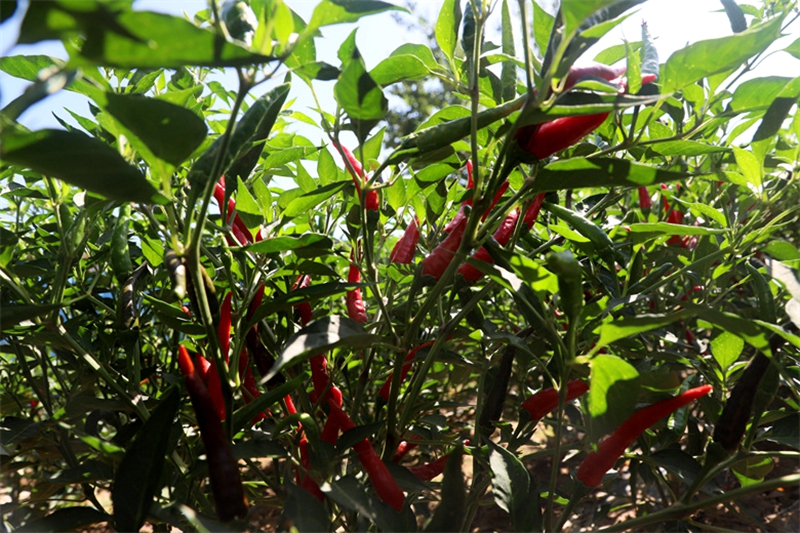种植户杨发喜种辣椒已有好多个年头,是当地有名的种椒能手,每年他都会积极尝试优质辣椒种子和种苗,不断试验试种,只为提升辣椒品质。杨发喜一边忙着采收一边介绍:“今年风调雨顺,辣椒长得比较好,我今年种了100多亩,预计亩产量可达550公斤左右,收益应该还是不错的。”火红的辣椒产业同时也带动了当地村民就近就业,在采收旺季,每天可吸纳200余名劳动力参与采摘、分拣、晾晒等工作,有效拓宽了群众的增收渠道。正在地里忙碌的村民李大姐笑着说:“这几天我们每天都采摘辣椒,一天能挣200多元,既能照顾家里,还增加了收入。”