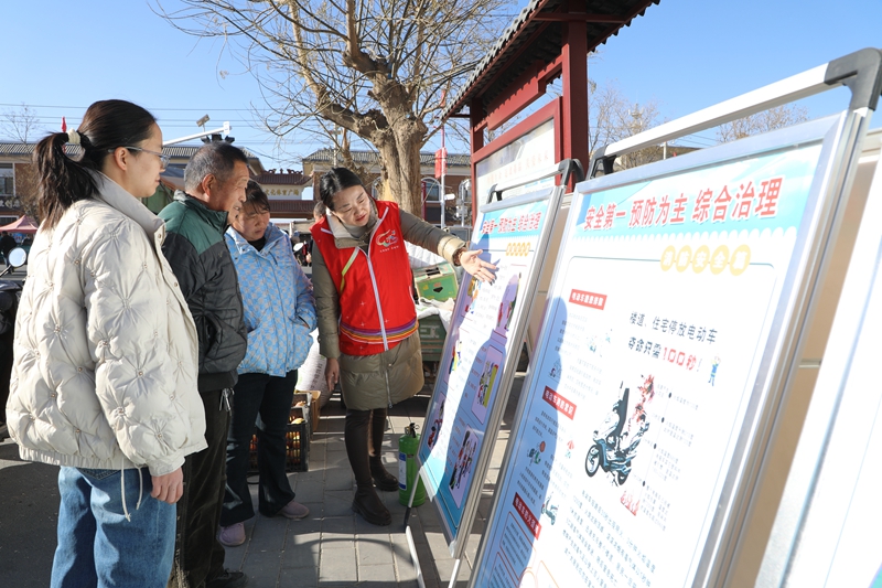 走进消防安全宣传活动现场,宣传人员一边向来往群众发放消防安全宣传册,一边结合近期农村典型火灾案例,用通俗易懂的方言讲解家庭用火用电用气注意事项、初期火灾扑救方法和火场逃生技巧。针对群众关心的“电动车咋充电安全”“柴草堆哪儿合适”等问题,宣传人员也一一耐心解答,让大家轻松学到实用消防知识。