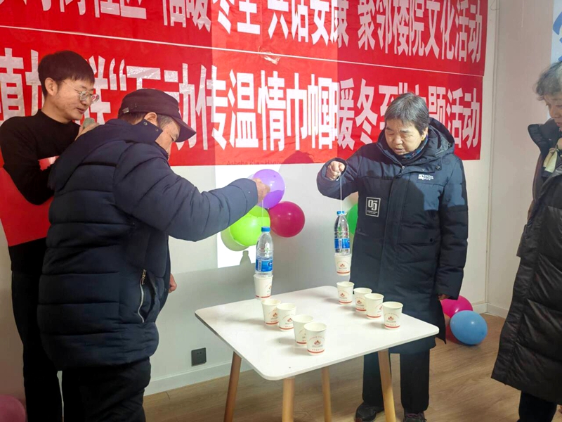 活动在欢声笑语中拉开帷幕。集体互动环节,居民们在主持人的有趣口令下迅速反应、默契配合,迅速打破了初见的拘谨。随后的击鼓传花成了才艺展示的舞台,歌声、笑话、诗词朗诵轮番上演,展现了居民们的多才多艺和积极乐观的精神风貌。游戏互动区域更是热闹非凡,“蒙眼吃饺子”“翻荷包蛋”“抢数字纸条”“小猫钓鱼”“鸡蛋托”等趣味游戏,让不同年龄段的居民都沉浸其中,加油声、欢笑声不绝于耳,邻里关系在互动游戏中悄然升温。