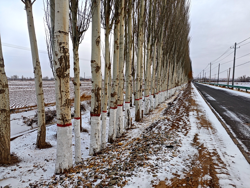 据该镇农业农村综合服务中心副主任贾天安介绍,此次冬季养护行动覆盖全镇主次干道及新补栽的农田林网,以杨树、柳树、国槐等易受冻害和病虫害侵袭的树种为主。行动开展前,该镇已围绕涂白高度、涂白剂厚度等关键指标制定严格作业标准,目前全镇树木涂白养护任务已全面完成。