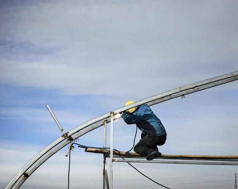 目前,基地新建的7座智能温室已有5座完成钢结构主体施工,剩余2座预计本周内完工,后续将开展棉被棉帘安装、保温系统调试等工作,整体工程预计2月上旬全面完工交付。为抢抓工期,施工方合理调配人力物力,严格按方案推进,还针对冬季低温制定专项保障措施,确保建设进度与质量。