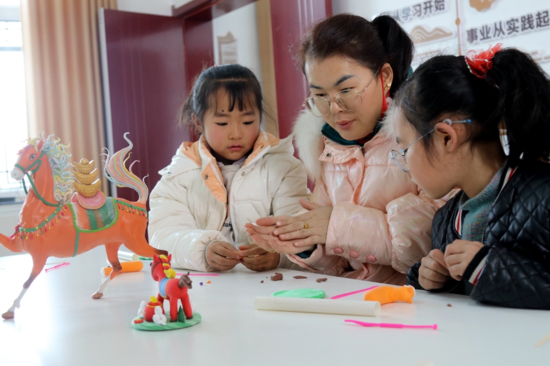 “这是我第一次接触非遗面塑,感觉特别有意思。我做了一匹红色的小马,很喜庆,想送给妈妈。今天不仅玩得开心,还学到了新技能!”托管班学生申钰琪在活动中说道。