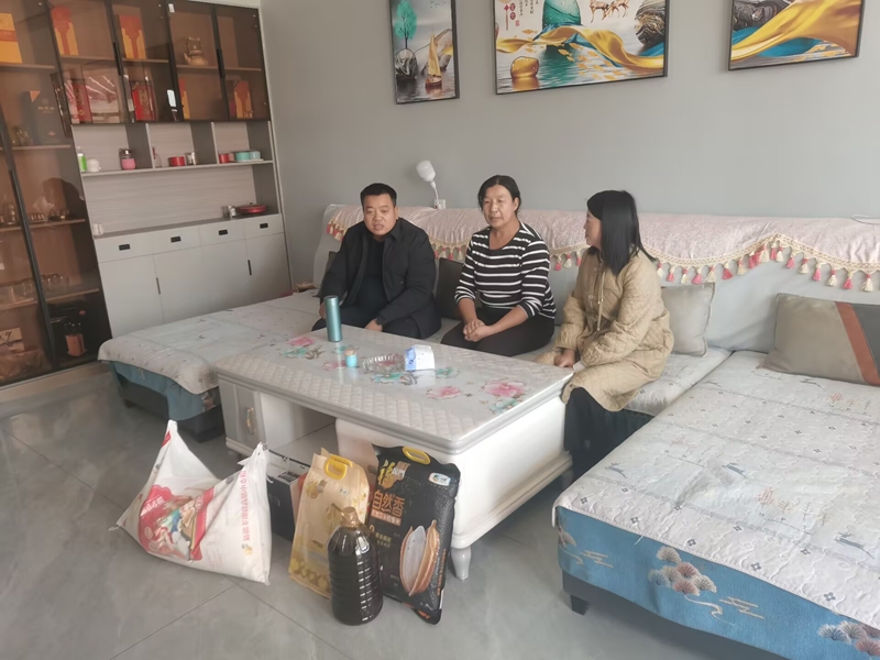 走访现场,镇村干部带着精心准备的米、面、油等生活必需品,走进困难群众家中,与他们面对面拉家常,没有生硬的寒暄,只有贴心的叮嘱,认真记录每一个诉求与心愿。针对孤寡老人普遍存在的心理孤寂问题,干部们化身“暖心陪伴者”,用真诚的话语开展情绪疏导和心理安慰,鼓励他们放下心理包袱,树立积极乐观的生活态度,在党和政府的关怀中重拾生活的信心与希望。