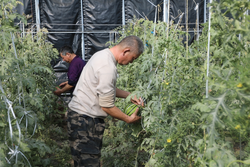 鸭暖镇古寨村党总支部书记李磊国说:“我们的大棚是今年十月上旬栽植的3000株西瓜苗,现在临近春节,已经进入丰收期,开始抓紧采摘,除了本地的销售以外,还有一些外地的客商前来采购,预计能够收入三万元以上,进一步增加村集体的收入。”