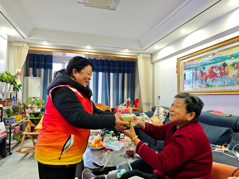 “奶奶,今天午饭是红烧肉和青菜豆腐,您趁热吃!”近日,沙河镇乐民社区工作人员褚惠荣带着热乎乎的餐盒,敲开了辖区老人祁玉桂的家门。为切实解决高龄、独居老年人“做饭难、吃饭愁”的实际困难,沙河镇依托社区敬老爱心餐厅,推出了面向老年人及特殊群体的“爱心送餐”服务,让行动不便的居民足不出户就能享用营养均衡、可口暖心的饭菜。