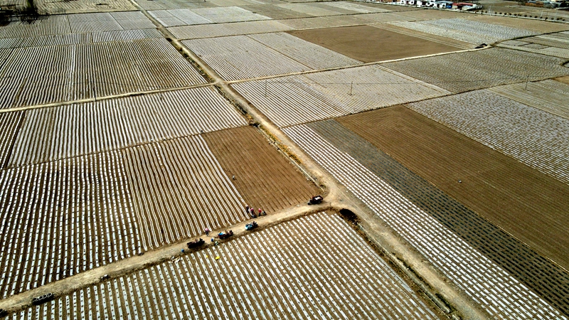 在沙河镇合强村玉米制种基地,种植户驾驶着覆膜机来回穿梭,开沟、施肥、压滴灌带、铺膜、覆土一系列工序一气呵成,一垄垄白色地膜如银色丝带镶嵌在田野之中。正在覆膜的农户兰吉双说,“今年我家种了42亩制种玉米,已经完成铺膜33亩,剩余的9亩再有1天时间就可以全部完成。等到4月10日播种,地膜下的土壤温度、湿度正合适,种子发芽和出苗率也更有保证。”