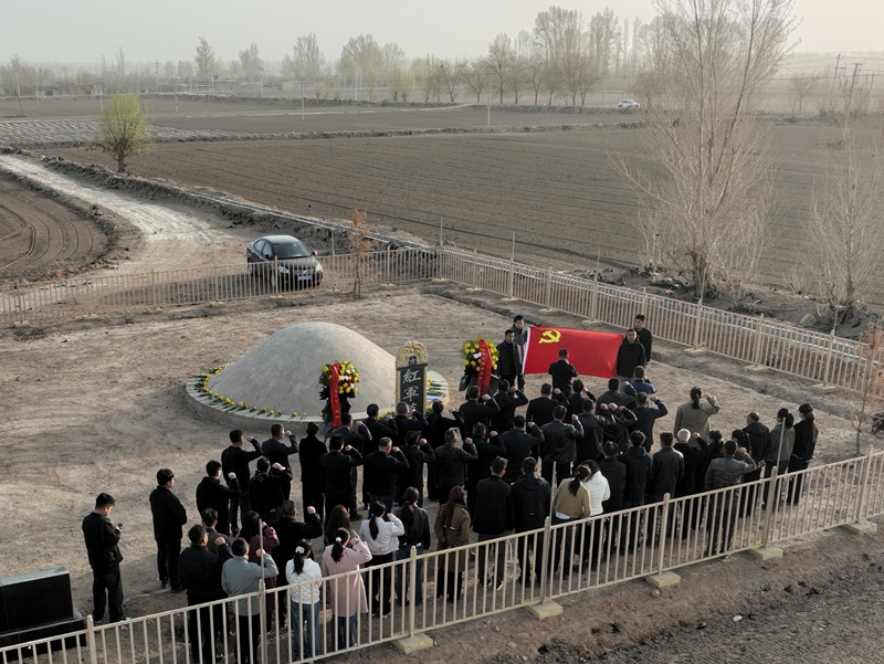 活动当天,全体领导干部怀着无比崇敬的心情,前往墩子村红军墓开展祭扫活动。苍松翠柏掩映下,红军墓碑庄严肃穆,寄托着人们对革命先烈的深切缅怀。全体人员整齐列队、神情肃穆,向革命先烈敬献花篮,整理花篮缎带,随后肃立默哀、鞠躬致敬,深切缅怀革命先烈不朽功勋,感悟革命先烈的崇高精神和家国情怀。祭扫现场,面对鲜红的党旗,全体党员高举右拳,重温入党誓词,铿锵有力的誓言回荡在墓区上空,进一步坚定了理想信念,强化了责任担当。