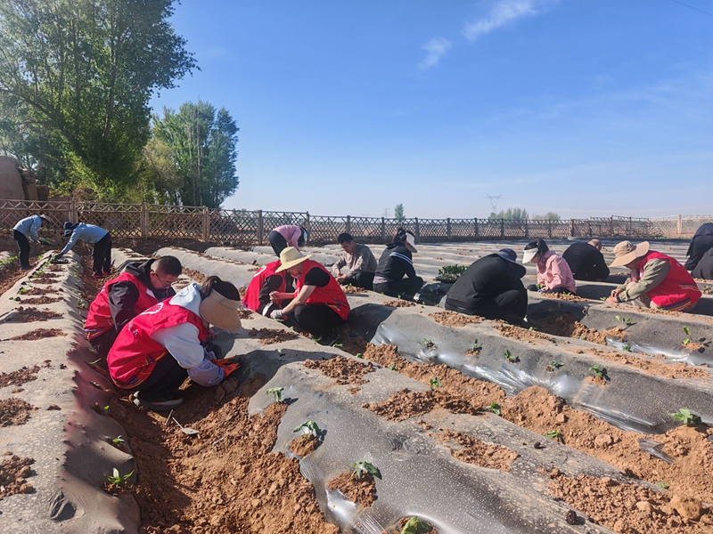 种植现场,全体领导干部分工明确、默契配合,一派热火朝天的忙碌景象。大家手持铁锹、铲子等工具,带着饱满的热情投入劳动,除草清杂、栽苗培土,每一个环节都有条不紊。忙碌的身影穿梭在菜园中,与春日的绿意相映,成为田间地头最靓丽的风景线。