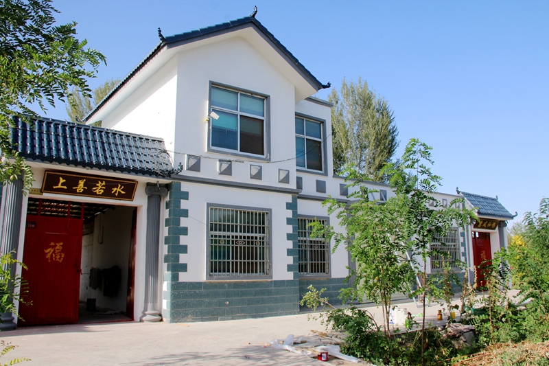 走进临泽县新华镇大寨村高质量住房示范点,一幢幢徽派风格的二层小洋楼整齐排列,一幅幅写有惠风和畅、上善若水等四字成语的牌匾在阳光下显得格外典雅,白墙灰瓦的农家院落和门口路树成荫的小花园形成了一幅和谐美丽的乡村画卷。