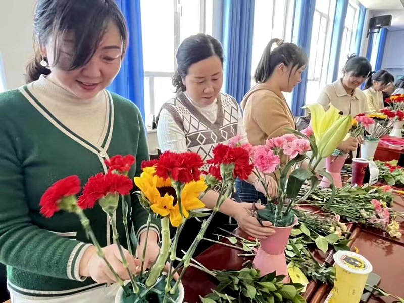 大家纷纷表示:在紧张有序的工作之余能近距离接触生活艺术,感受花艺魅力,提升审美素养,是一种很好的休息与调剂方式。我们把甜美的爱留给家人的同时,更要把无私的爱奉献学生,踔厉奋发、勇毅前行,践行教育家精神,努力做塑造学生品德、品行、品格的“大先生”,继续撑起这美好世界的半边天!(贺玉娟 张晓霞 兰晓璐 张燕 代学荣 刘红梅 李涛 张彩兰 岩国鹏 张玲 李建萍 董丽丽 王鹏 贺小平 张扬洋 谢静)