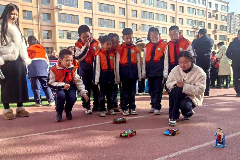 活动现场,科普大篷车展品刚一亮相,就吸引了众多学生的目光,灵活可爱的“机器狗”、功能各异的“机器人”“大国重器”以及VR眼镜等,新奇有趣,瞬间点燃了孩子们的好奇心,学生们纷纷围拢过来,迫不及待地观察、操作,在探索中感受科技的神奇。同时,科普辅导员用生动的演示和通俗易懂的讲解,向学生们介绍复兴号电力动车组、“蛟龙”号载人潜水艇、北斗卫星三号等一系列展品背后的科学原理和科技创新知识,从简单的力学原理到复杂的人工智能技术以及我国重大科技事件,新奇的体验方式,不仅让孩子们领略到科技的魅力,更让他们对科学技术的向往愈发浓厚,在轻松愉悦的氛围中开启了科学探索之旅。