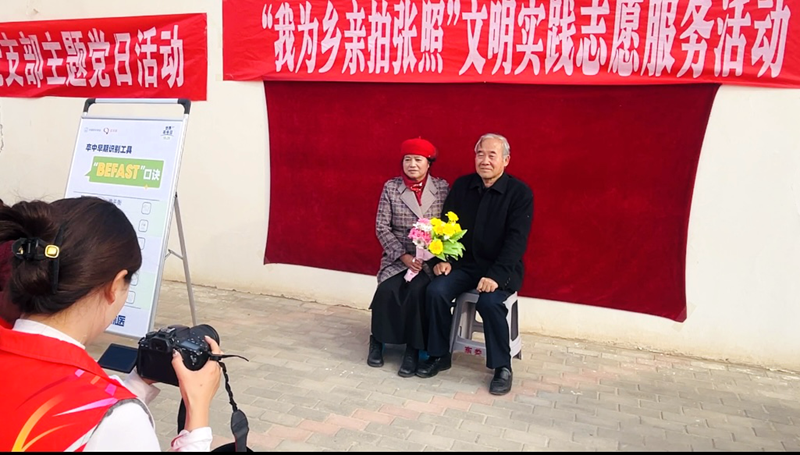 “来,奶奶您看镜头,笑一笑!”在“我为乡亲拍张照”活动现场,社区志愿者化身“摄影师”,耐心地为老年居民调整姿势、整理衣物。许多老人平时很少拍照,面对镜头略显羞涩,志愿者们用亲切的话语引导,捕捉下他们最自然的瞬间。“我已经好几年没拍过正经照片了,这次社区想得太周到了!”拿到打印出来的照片,张奶奶爱不释手,连连向志愿者道谢。