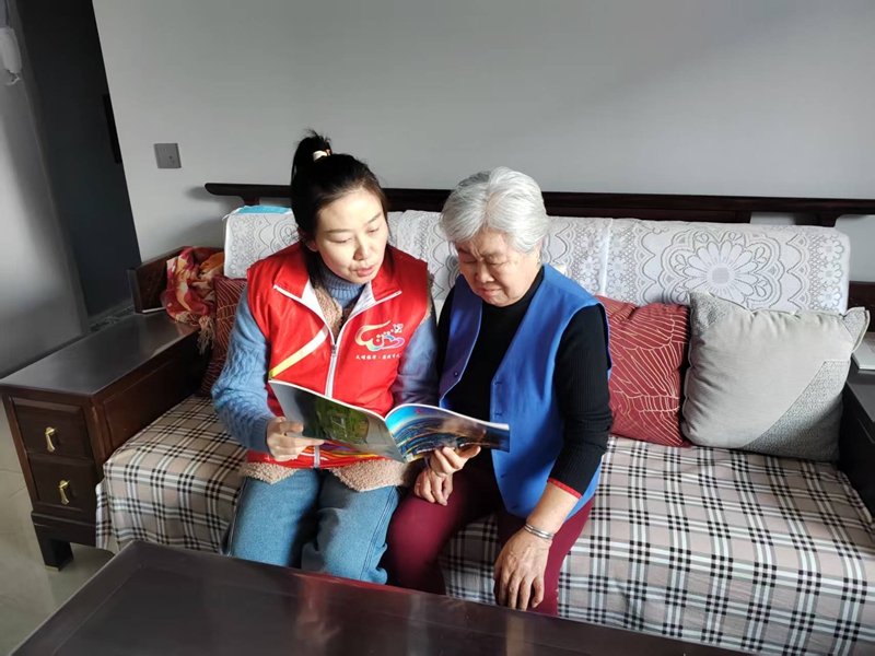 送学过程中,社区党员志愿者们带着精心准备的学习资料,逐一走进年老体弱党员家中,与老党员们促膝谈心、亲切交流。在老党员家中,志愿者们首先关切地询问老党员的身体状况和生活近况,仔细查看家中水电使用情况,叮嘱老党员天气变化注意添衣保暖,有生活困难及时向社区反映,让老党员在感受学习温暖的同时,更体会到组织的牵挂。随后,志愿者们坐在老党员身边,采取“读原文、划重点、聊感悟”的方式,逐字逐句为老党员解读学习内容,结合社区发展实际和老党员熟悉的身边事,用通俗直白的语言讲解理论内涵,让抽象的理论变得具体生动。