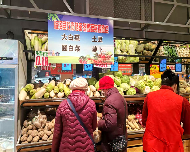 此次投放为方便群众采购,筛选临百超市、万佳超市两家超市作为投放点,并统一悬挂“临泽县政府储备冬春蔬菜投放点”标识牌,同时公示蔬菜品种与价格,投放品种涵盖大白菜、土豆、萝卜、圆白菜。
