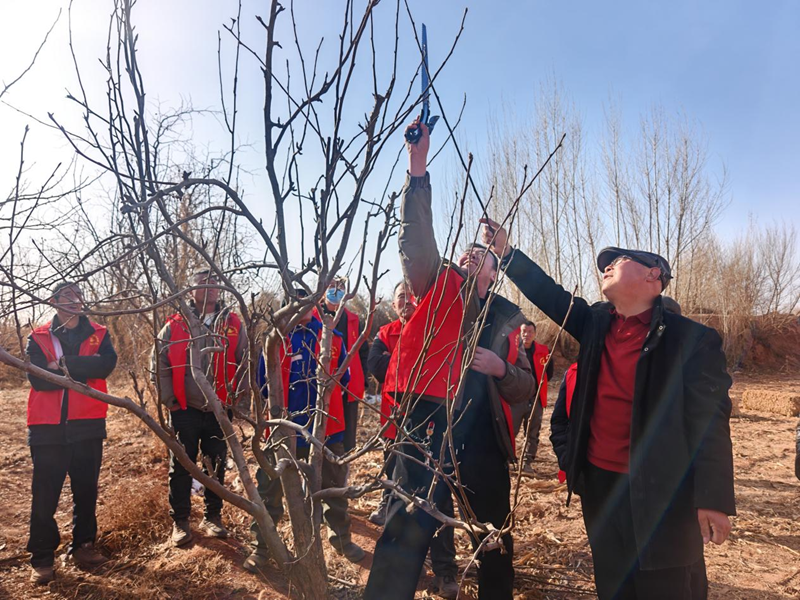技能赋能见效,园艺本领点亮增收路。原本闲散的冬闲时光,如今成为村民“学技能、强本领”的黄金期。培训中,学员们带着种植中的实际问题认真学、跟着老师亲手练,细致记录技术要点、交流种植经验,不仅系统掌握了10余项实用园艺技能,更深刻认识到园艺技术对林果提质增产的重要意义。“以前剪树全凭老经验,枝子剪得乱七八糟,今天专家教的园艺修剪法,能让果树通风透光更好,明年杏子坐果肯定更多。”友好村种植户王某看着修剪整齐的果树,脸上满是笑意。