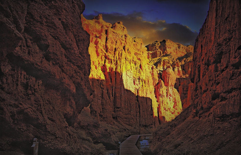 落日正进行最后的校勘:熔火淬炼沟壑,紫霭浸透层理。