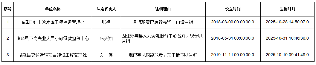 临泽县事业单位登记管理局注销公告第400485530期