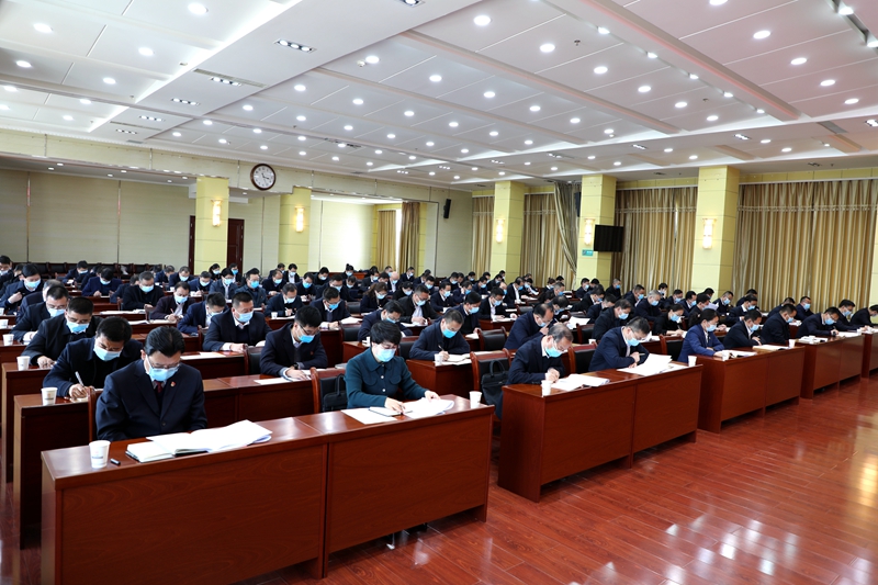 县领导许兴权、冯新山、韩建军等参加,谢青春解读“三抓三促”行动方案并从纪检监察机关角度作安排,任刚、王晓霞从组织、宣传部门角度提出工作要求。