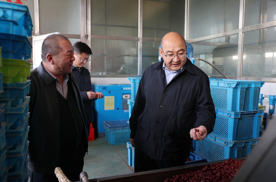 张成琦一行先后来到宏鑫矿业、自强枣业、莫高宏远、易事特、鸿泽农业、央尊乳业等企业,进车间、看生产、问产能、查安全,与企业负责人面对面交流,详细了解产能恢复、市场拓展、要素保障、安全生产措施落实以及年度发展规划等情况,协调解决企业发展中遇到的困难和问题。