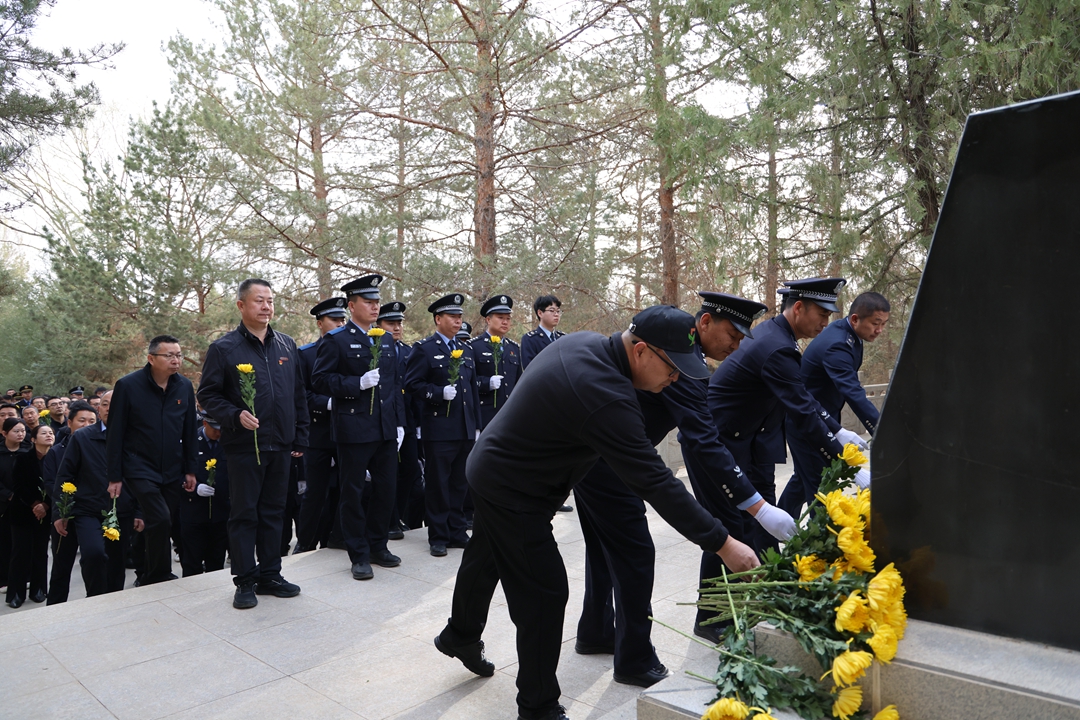 苍松翠柏掩映下的烈士纪念碑巍然屹立、庄严静穆。上午8时30分,活动在庄严的国歌声中开始,伴随着庄重的《献花曲》,礼兵抬起花篮,缓步走向烈士纪念碑,将花篮摆放在纪念碑基座前。县委书记张成琦迈步登上纪念碑基座,仔细整理花篮缎带。全场肃立,向革命先烈三鞠躬。