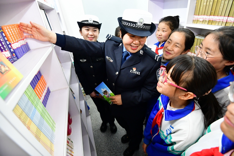 临泽县公安局交警大队法治宣传民警走进华强中心小学,与学生们开展“读书润童年、故事润童心”主题阅读活动。活动中,民警们用通俗易懂、幽默风趣的语言向小朋友们讲述法律小故事和法律知识,教会小朋友们在生活中如何提升自我防范意识,引导学生们领会“世界读书日”的意义。(安学海)