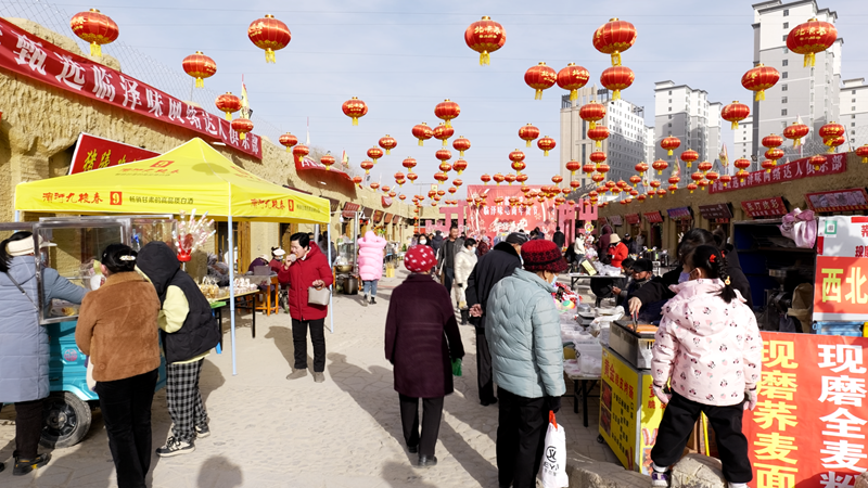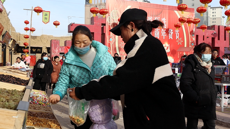 西游甄选临泽味电商年货节,是一个承载西北“土特产”的集市,水果蔬菜、瓜子糖果、冷冻水产、春联窗花、熟食卤味等农家土特产应有尽有,集市从1月初正式营业,小摊点、门面现已入驻70多家,随着年关临近,小摊市场的人流量也在不断加大。