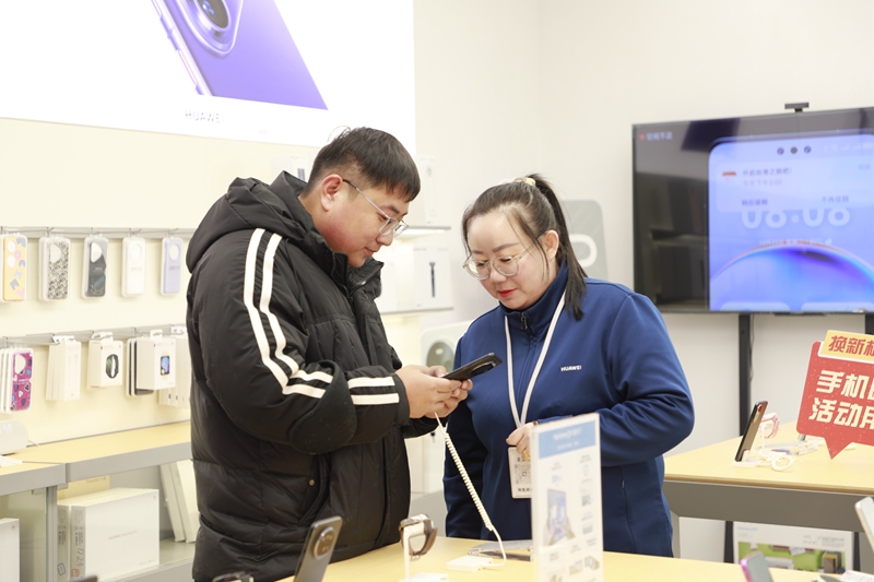市民宋泽林便是其中一位。他此前在网上看中一款华为手机,本打算作为新年礼物送给家人。1月25日,他走进临泽移动中心,惊喜地得知可以享受“国补”政策,还能参加以旧换新活动。这一系列优惠让他心动不已,当即下单,成为临泽县享受数码产品国补优惠的首位客户。