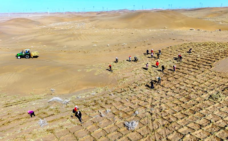 春风催新绿,防沙治沙忙。随着天气转暖,一场与风沙竞速的绿色攻坚战打响。