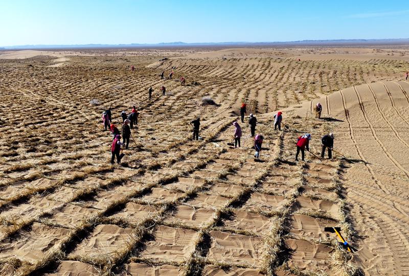“目前我们的沙化封禁保护区补充项目,计划任务是2500亩,自2月16日开工以来,每天工人保持在100人次以上,每天的压沙面积在90亩以上,截至目前我们的压沙面积已经完成接近1000亩,计划于3月15日之前全部完工。”县自然资源局项目办干部丁辉介绍道。