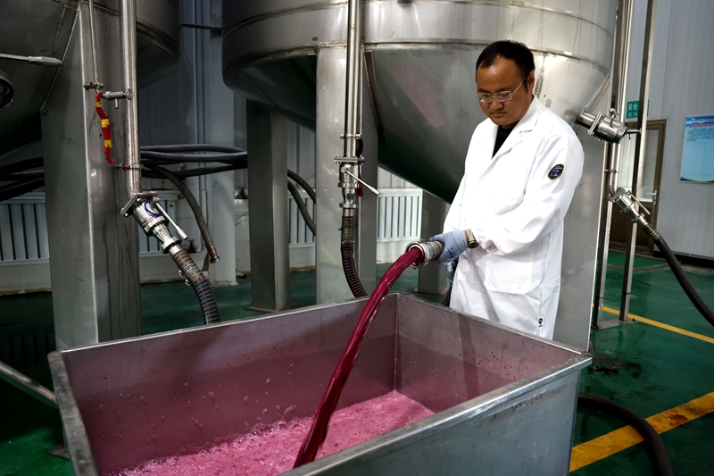 甘肃红桥庄园葡萄酒有限公司副总经理贾岐乾说:“我们从9月17日开始采收,第一批采收的是美乐,美乐计划采收220吨,今年的红葡萄产量预计在600吨左右,整个压榨工作在十一期间就能完全结束,发酵结束大概到11月1日。”