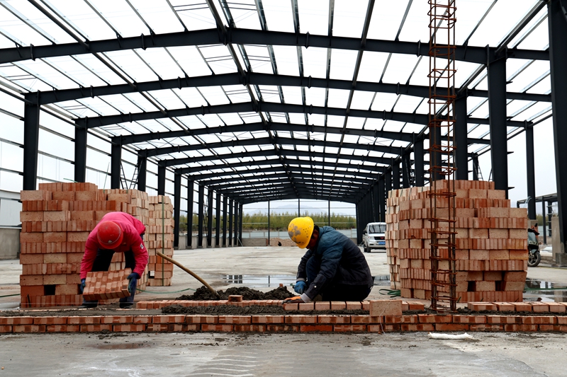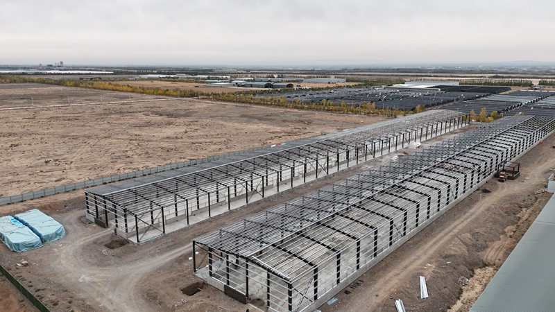 项目施工经理孟利鹏说:“示范园区于2025年3月15日开工,至目前已完成了两座冷库的主体工程,配套的绿化道路及蓄水池、卫生间已完工,剩余的安装、喷淋、电气计划于12月底完成。”