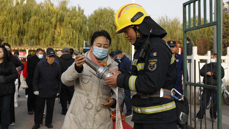 活动现场人气爆棚,三大核心板块各展特色、亮点纷呈。消防人员通过咨询解答、摆放展板、发放消防安全宣传材料等方式,向广大群众宣传消防安全法律法规、家庭常见应急情况处置、应急逃生自救知识等内容。不仅细致演示灭火器操作方法,更手把手指导群众亲身实践消防水带连接等实用技能。灭火演练体验区里,模拟油锅起火,群众在救援人员的指引下,学习灭火器使用技巧,沉浸式感受火灾场景下的应急处置要点。