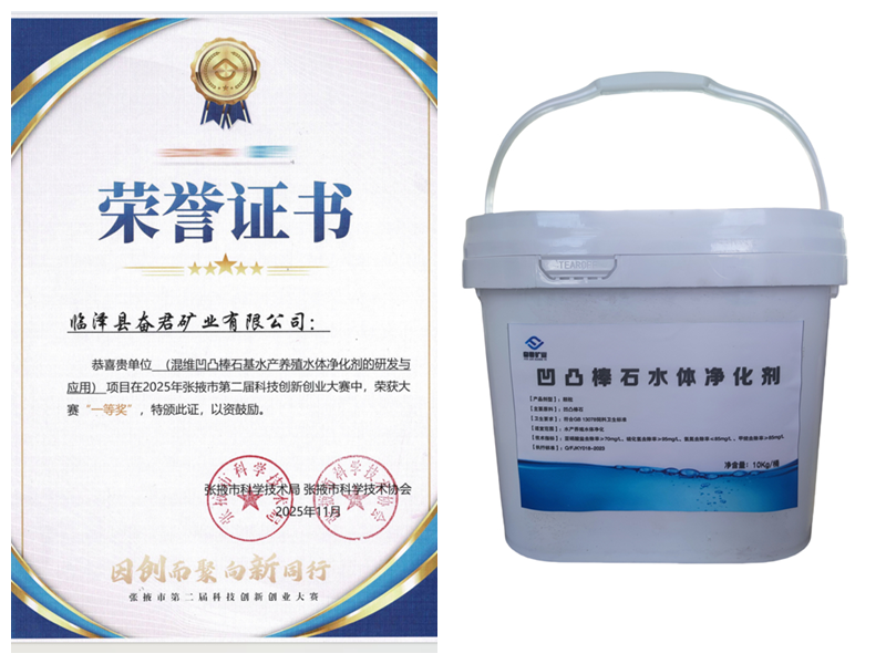 11月12日,张掖市第二届科技创新创业大赛落幕,临泽县奋君矿业有限公司凭借《混维凹凸棒石基水产养殖水体净化剂的研发与应用》项目在大赛中脱颖而出,成功斩获大赛一等奖。