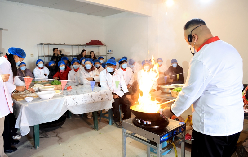 与此同时,沙河镇兰家堡村村委会内香气四溢、热闹非凡,一场中式烹调师就业技能培训在这里开展。培训中,授课老师从烹饪原料的初加工、实用刀工技法、不同火候选择、不同味型的烹调方法以及多种热菜、凉菜的制作方法等方面系统地为参训学员讲解家常菜的烹调技艺和烹饪知识。