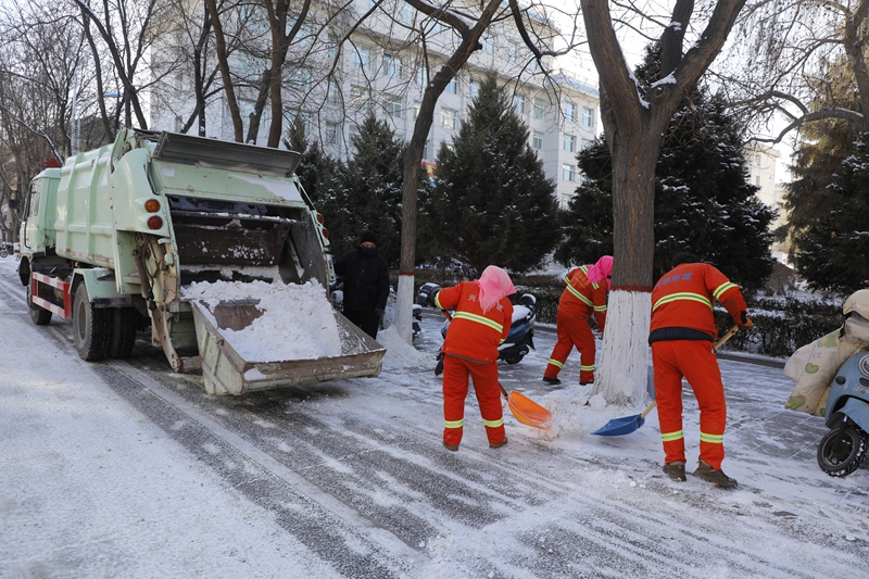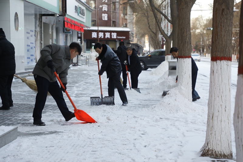 同时,城区各商铺经营者也积极响应,纷纷自发清扫门店前的积雪。在各条街道上,商户们与干部群众同心协力,原本积雪覆盖的路面逐渐恢复原貌,有效保障了行人与车辆的通行安全。