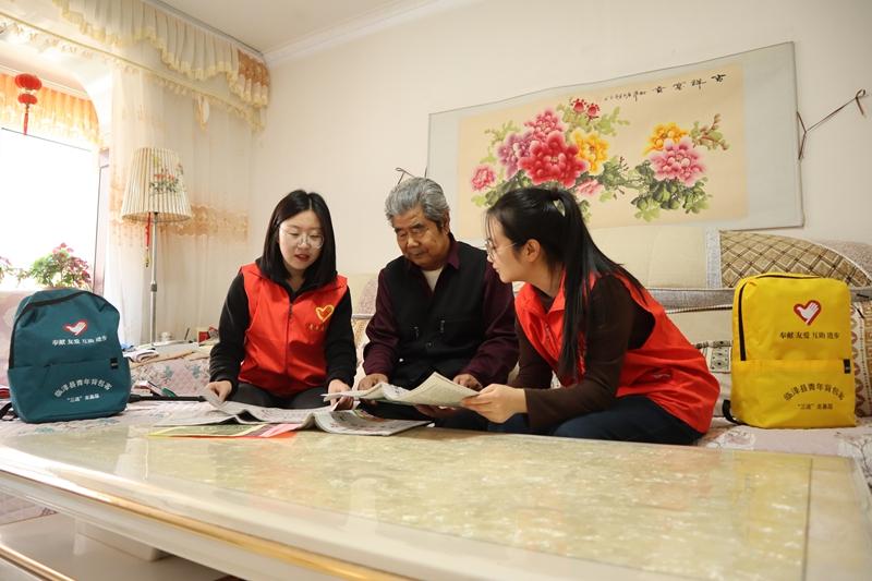 近日,团县委青年“背包客”宣讲团成员们背着装满政策手册的背包分别来到了颐和社区居民赵元录和王天贵的家中,结合报纸、宣传图册等资料,用通俗易懂的语言向他们介绍“十四五”时期全县的发展成就,深入浅出地解读党的二十届四中全会精神。