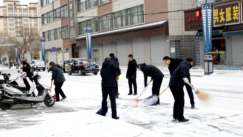 在城区各主次干道和街道辖区内,随处可见干部职工及群众扫雪保畅的身影。众人热情高涨、统一行动,分工明确,全力清除街道及人行道路上的积雪,为市民清扫出一条条“平安路”“温暖路”,劳动的热情和团结的力量构成一道道亮丽又温暖的风景线。
