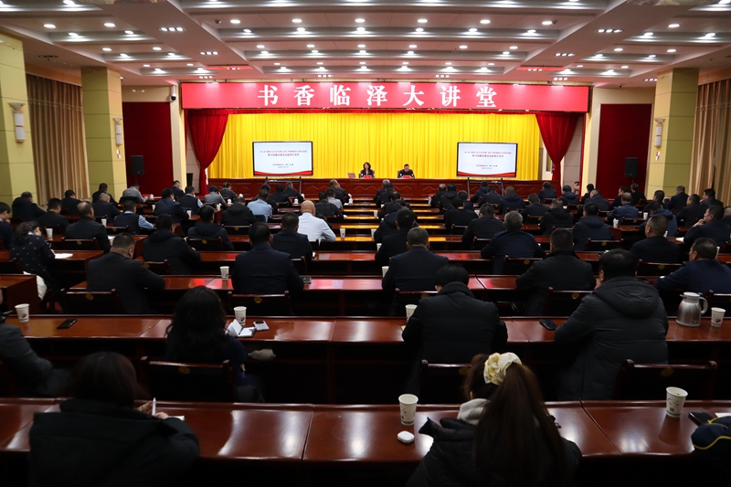 12月12日,第四期“书香临泽大讲堂”开讲,本次讲座特邀张掖市司法局党组书记、局长赵静,围绕《深入学习贯彻习近平法治思想,运用三种思维提升行政执法效能,努力创建全国法治政府示范市》作专题辅导讲座。县委、县人大、县政府、县政协领导及其他县级干部,各镇党委书记或镇长,县直及省市驻临有关单位主要负责人,县委政法委、县公安局、县法院、县检察院、县司法局其他班子成员,共计110余人聆听讲座。