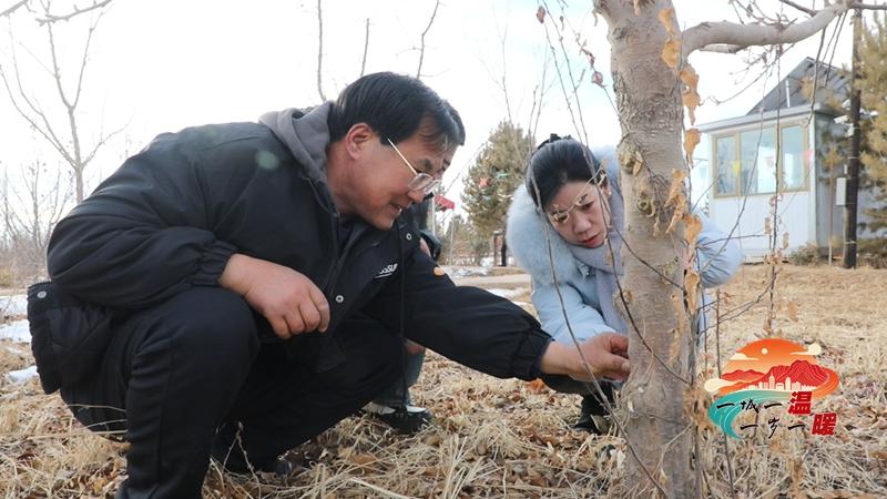 寒冬时节,正红果园里却涌动着融融生机。县农技中心的尹丽娟正蹲在果树旁,手把手指导种植户程宏检查果树生长情况。不久前,这片果园还因梨火疫病的侵袭愁云密布,如今,在尹丽娟的帮扶下,果树已重焕生机。