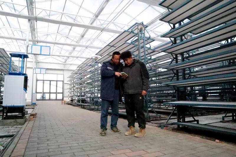 数字技术的应用,更带来了看得见的效益提升。“使用立体式旋转育苗机,育苗周期能缩短15天左右,节约80%的育苗面积,成本降低30%,出苗率稳定在95%,可提升每平方米育苗量6倍以上。”王磊算了一笔“智慧账”,这座温室满负荷运转可培育4万盘种苗,能满足1000亩蔬菜种植需求,为后续春耕播种筑牢种苗根基。