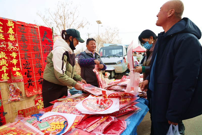 步入集市,“春节红”便扑面而来。对联摊位前,宋玲花用冻得微红的手,将一沓春联仔细铺平。红纸金字在冬日的阳光下泛起温润光泽,像一小团一小团安静燃烧的火苗,温暖着整个清晨。