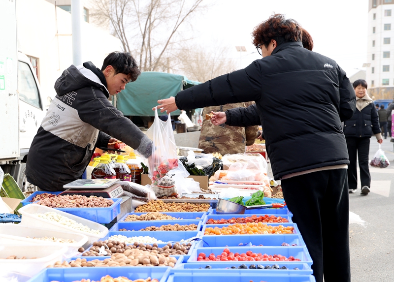 在宋玲花的春联摊前,红纸映着她冻红的手,一句“卖对联,才有过年的味道”,道出了仪式感对日常生活的郑重加持。老人们摩挲春联时的目光,深沉如岁月本身。穿行于“年货仓”,自产蔬菜的泥土气、炒货甜香、小吃热气,共同蒸腾出最扎实的民生温度。城里返乡客的感慨,印证了乡土集市不可替代的情感价值。
