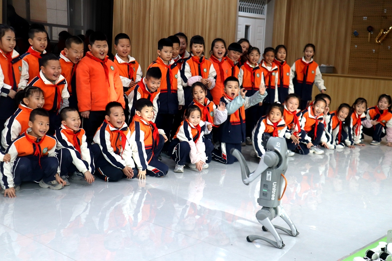 在城关小学,老师们围绕收心教育、习惯养成和目标规划,引导同学们以崭新姿态投入新学期的学习生活。随后,县科技馆带来的智能机器狗成为活动亮点。伴随着欢快的音乐,机器狗灵活起舞,做出挥手、转圈等动作,引得孩子们阵阵欢呼。大家认真观察、踊跃提问,在欢声笑语中种下热爱科学、勇于探索的种子。