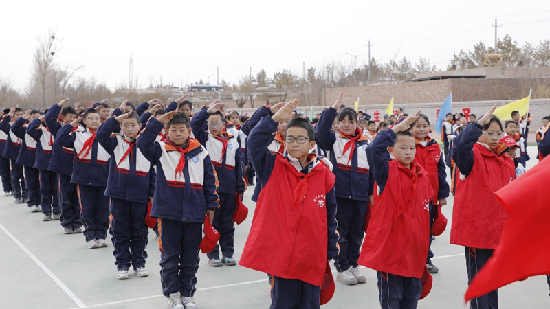 活动在庄严的出少先队旗仪式中正式开始,鲜艳的少先队旗迎风飘扬,全体少先队员精神饱满,齐声高唱《中国少年先锋队队歌》,嘹亮的歌声响彻整个校园,展现出新时代少年儿童昂扬向上的精神风貌。
