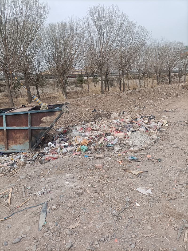 沙河镇新民村铁路洞子北侧垃圾不入斗,水渠内垃圾多