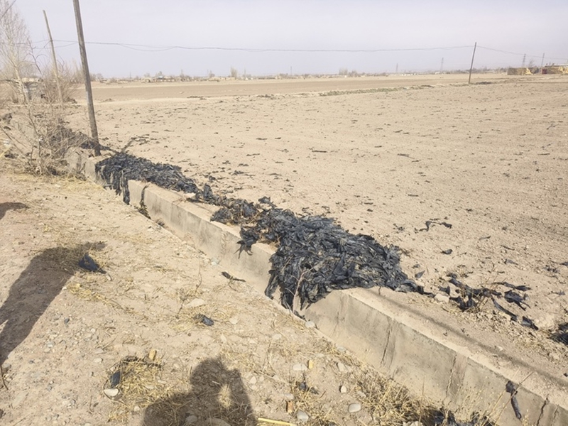 平川镇四坝村与芦湾村交界处(张罗公路南侧)存在大量废旧地膜