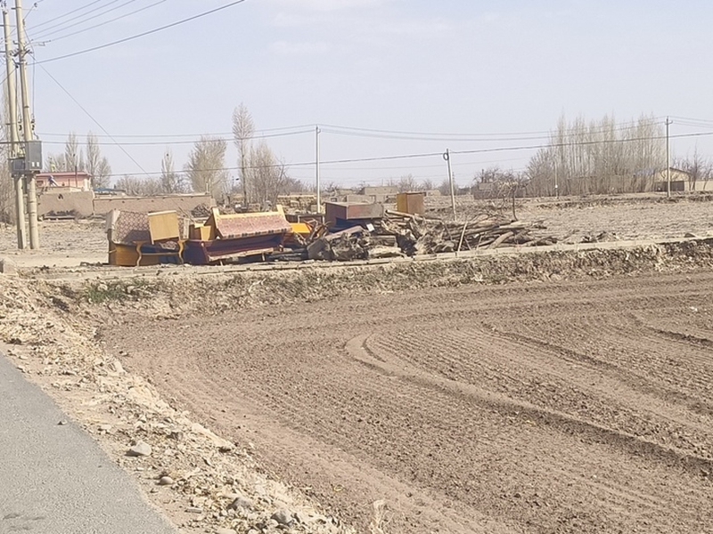 新华镇富强村1社主干道东侧废旧家具和木头杂乱堆放